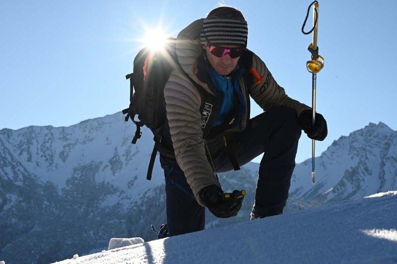 -Handhabung und sondieren mit der Lawinensonde